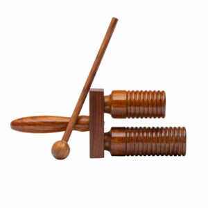 La malle d’animations musicales propose une diversité de percussions à secouer ou à frapper, fabriquées en bois, en fer ou en peau.